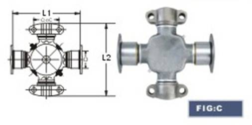 | U-JOINT WITH 4 PLAIN ROUND BEARINGS AND 4 GROOVED ROUND BEARINGS |